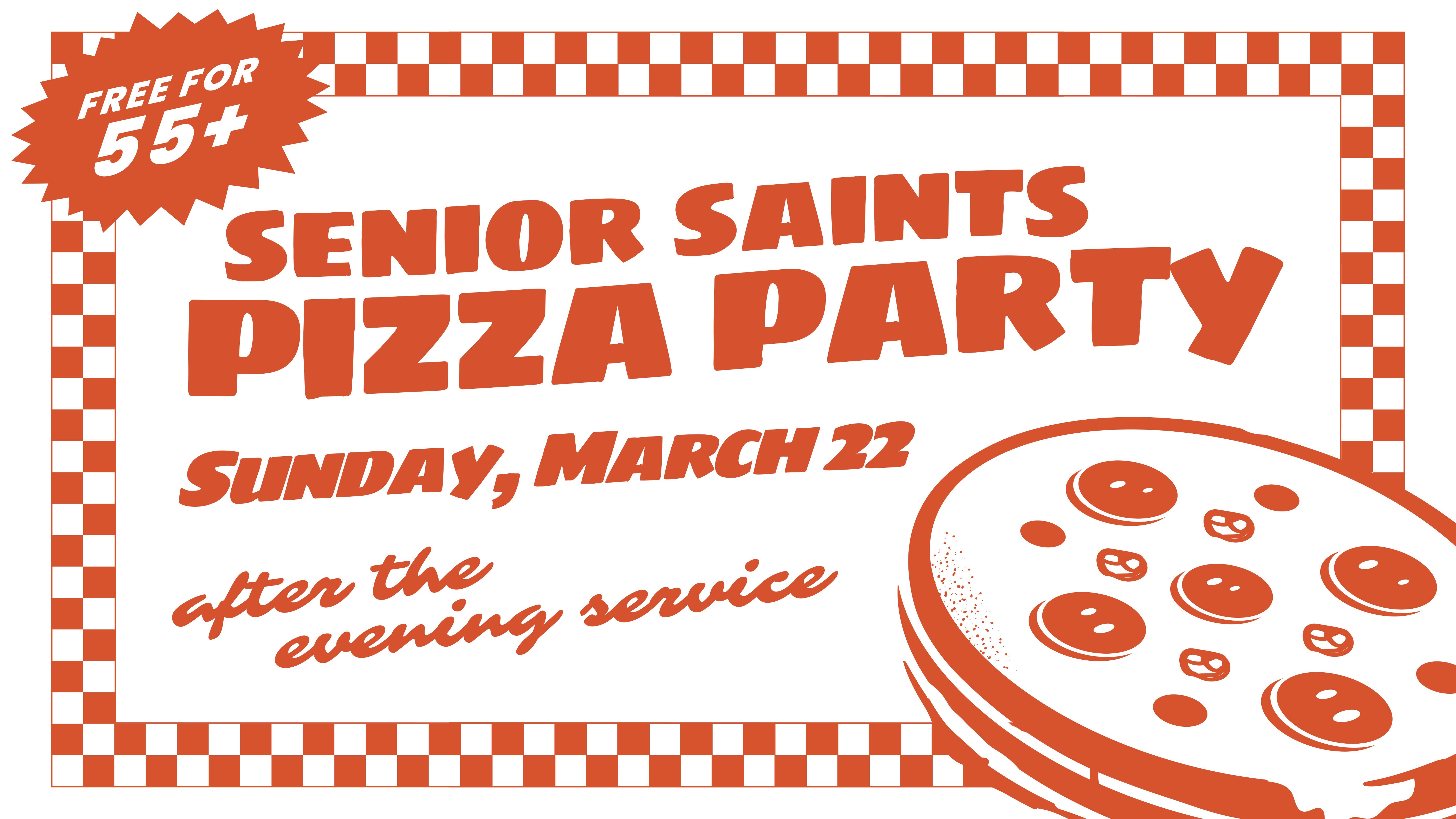 Anyone 55+ may join us in the Activity Center following the Evening Service for pizza and fellowship.